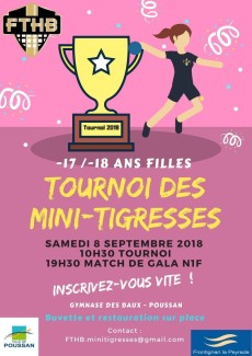 ![]() | Tournoi des Minitigresses (-17/-18F)08/09/2018 | 34 - Hérault | Terminé |